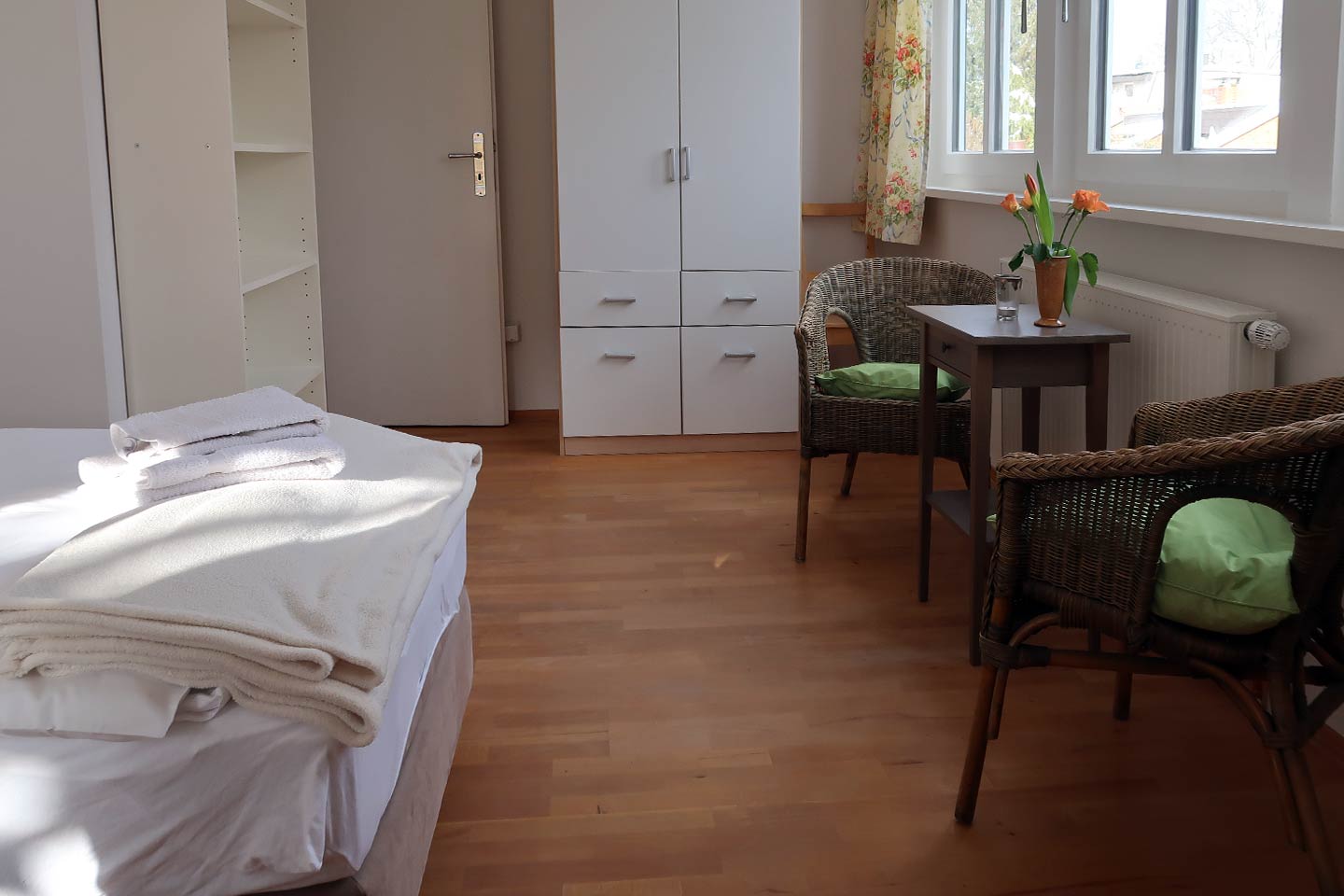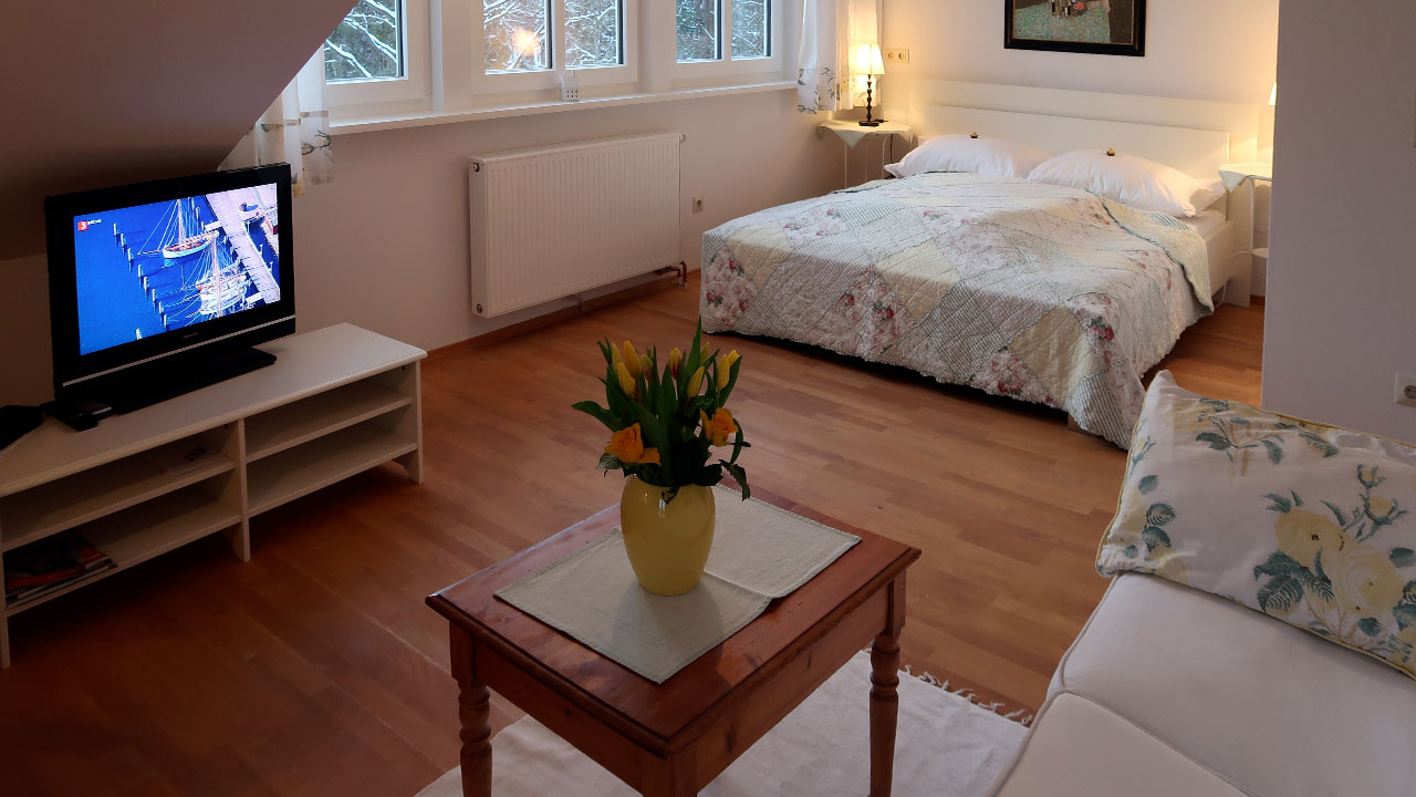 1-room flat: 1 pers. 55,- €, 2 pers. 75,- €